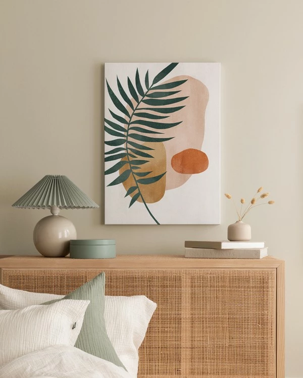 Dette motiv er trykt på lærred og har en flad overflade.