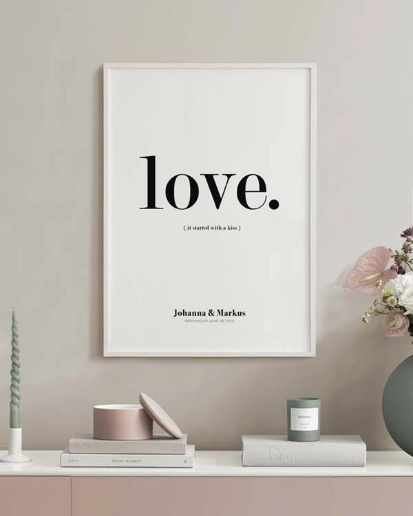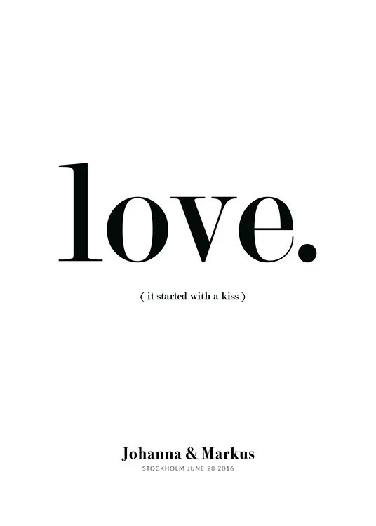 Alt, hvad du behøver, er kærlighed. Gør denne plakat personlig ved at tilføje navne og en særlig dato. Perfekt gave til din kærlighed.