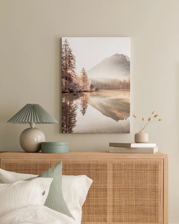 Dette motiv er trykt på lærred og har en flad overflade.